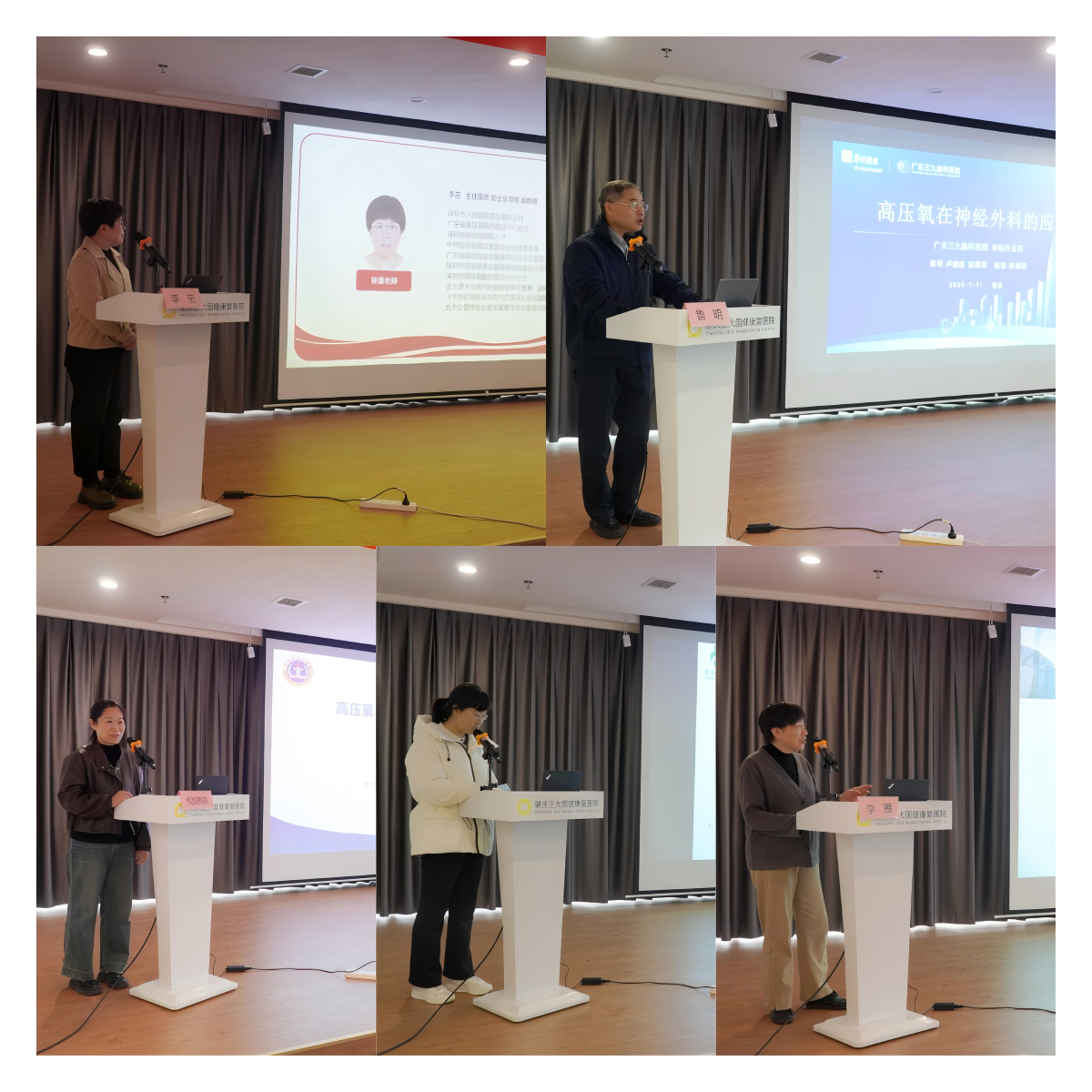 学术年会的核心环节——系列学术讲座相继开讲。本次学术分享聚焦高压氧医学前沿技术与临床实践,内容兼具专业性与实用性。来自深圳市人民医院的龙颖专家以《高质量高压氧治疗:在健康疾病进展中定位,在临床需求中展望未来》为题,深入剖析高压氧治疗的临床价值与发展方向;李茁教授则分享了《高压氧干预下运动想象脑机接口训练的设计与实践》的创新成果。此外,鲁明、倪啸晓、李萌等省内外专家分别围绕高压氧在神经外科术后应用、氧舱内机械通气治疗疗效及多疾病康复应用等主题展开精彩讲解,为现场听众带来一场丰富的学术盛宴。