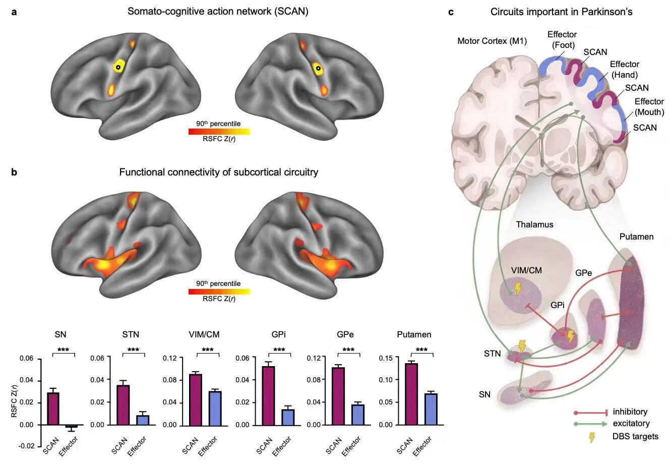 此项由昌平实验室牵头,联合清华大学、北京大学、美国华盛顿大学圣路易斯、哈佛大学、河南省人民医院等十余家国内外顶尖科研与临床机构完成的研究,通过对超800例多模态临床影像数据的系统分析,在全球首次揭示:帕金森病患者的躯体认知环路与基底节、丘脑等疾病相关关键脑区之间存在紧密连接,且这些连接呈现病理性异常增强。